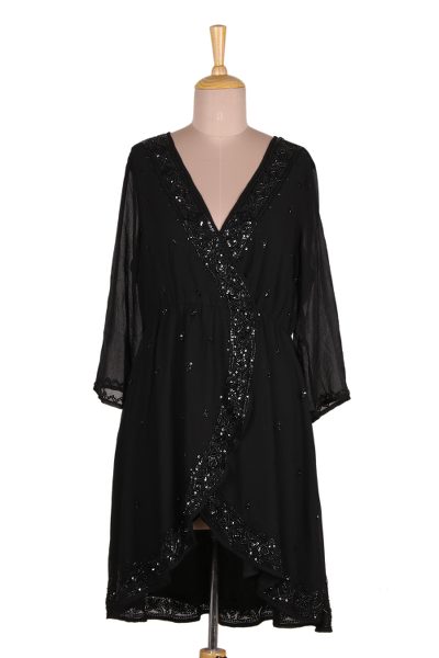Dressy Black Beaded and Embroidered Cotton and Silk Tunic