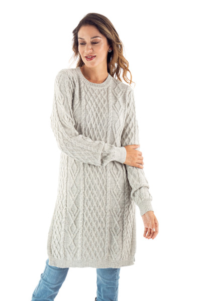 Baby Alpaca Teal Cable Knit Tunic Sweater Dress